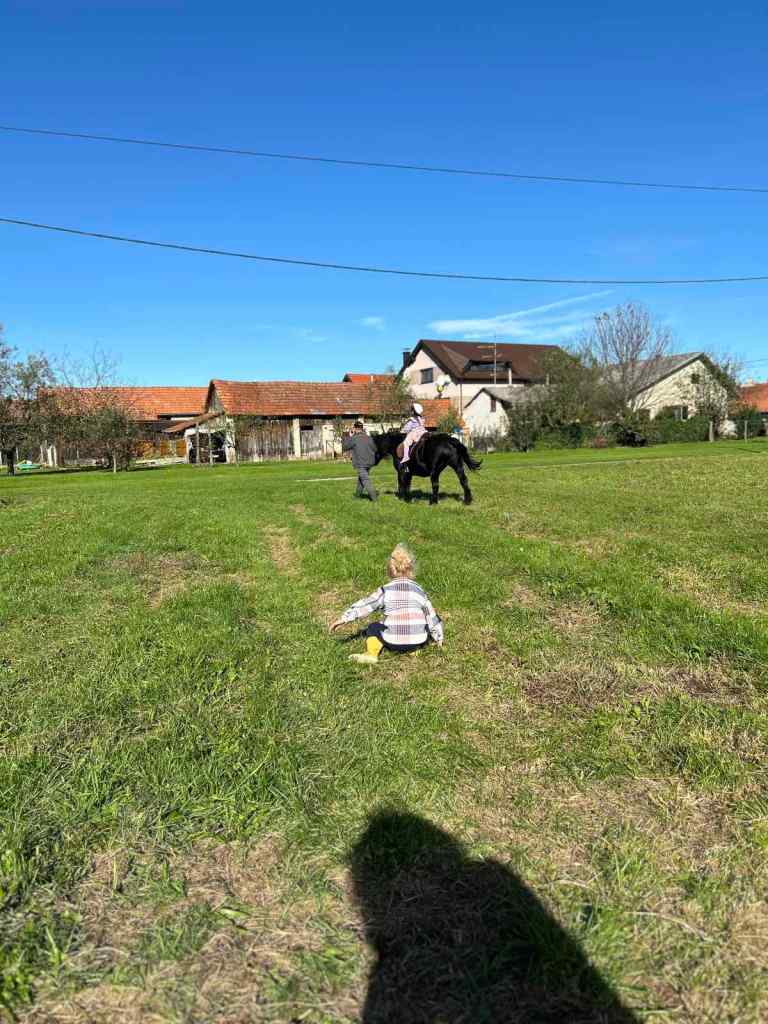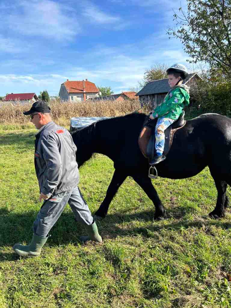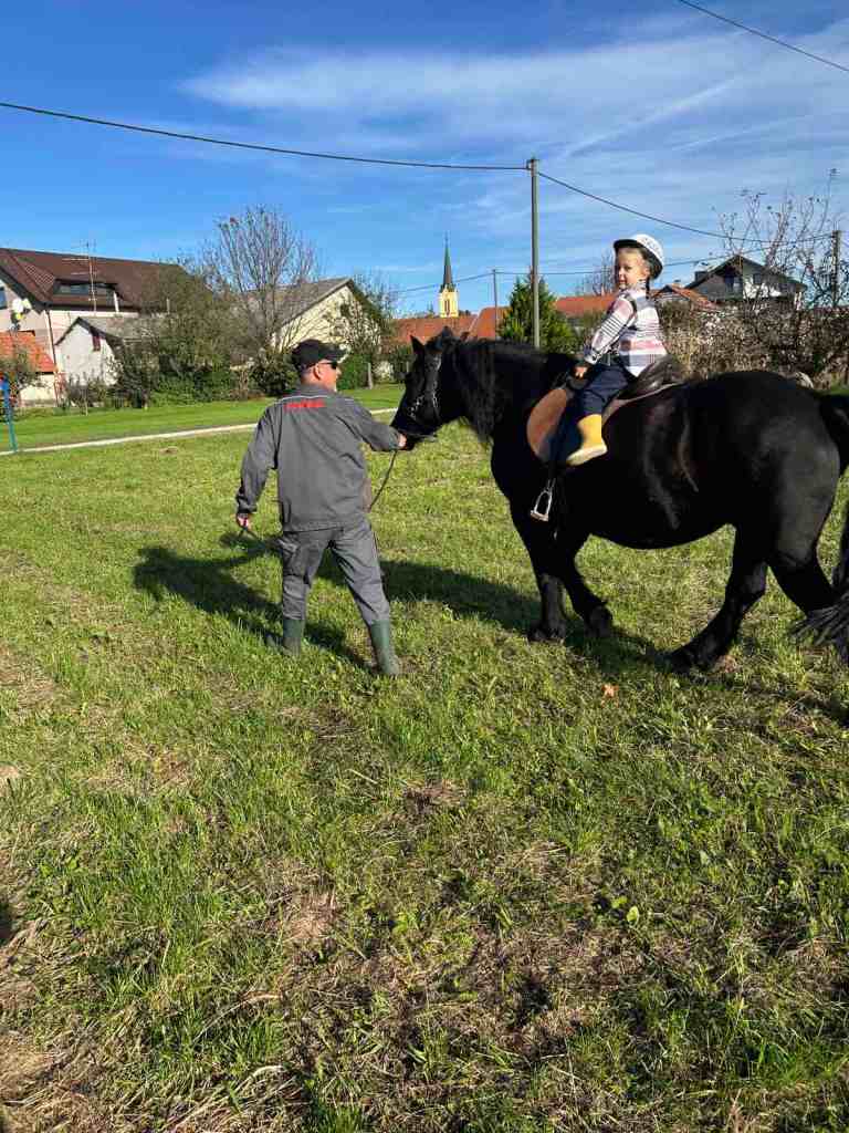 Dolaskom na gospodarstvo, djecu su dočekali srdačni domaćini, a pogled na prekrasan pejzaž, staje i livade odmah je izazvao oduševljenje. Najveća atrakcija dana bila je jahanje konja Zebe. Uz pomoć domaćina Dragana Žagara, djeca su mogla sjesti na konja i proći kratku rutu. Osmijesi na licima mališana jasno su pokazivali koliko uživaju u ovom jedinstvenom iskustvu. Za mnoge je to bilo prvi put da jašu konja, a hrabro su se prepustili toj avanturi.