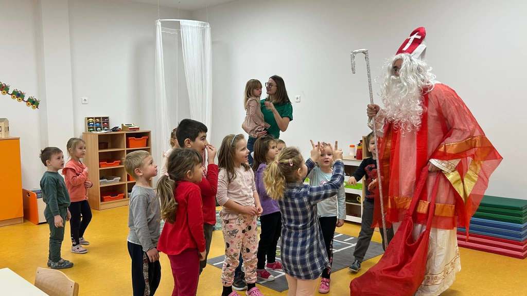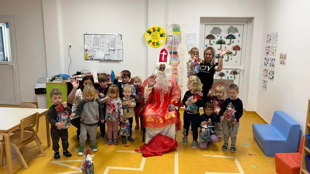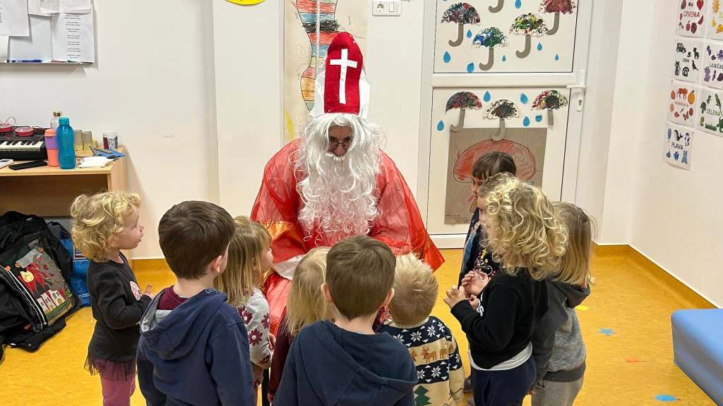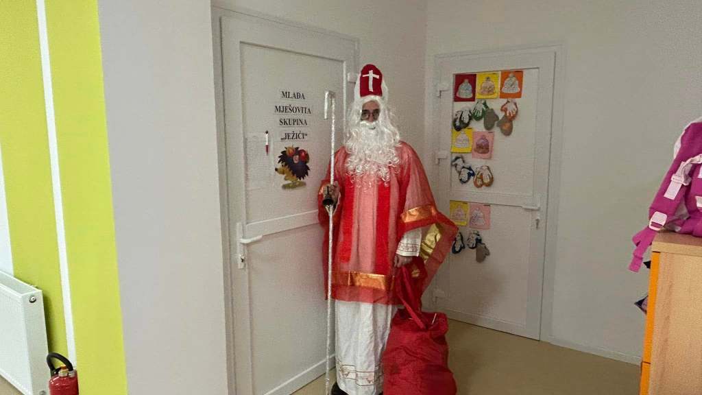 Sveti Nikola je pokucao na vrata svake skupine u vrtiću i donio darove za svu djecu. Mala srca ispunila su se oduševljenjem kada su ugledala svog omiljenog svetog zaštitnika, a smijeh i radost čuli su se iz svih prostorija vrtića. Djeca su za ovu priliku pripremila prigodan program u kojem su pjesmom, plesom i recitacijama zahvalila Svetom Nikoli na dolasku. Svaka skupina posebno je obećala kako će biti dobra i poslušna, te da će i iduće godine nestrpljivo čekati njegov povratak.