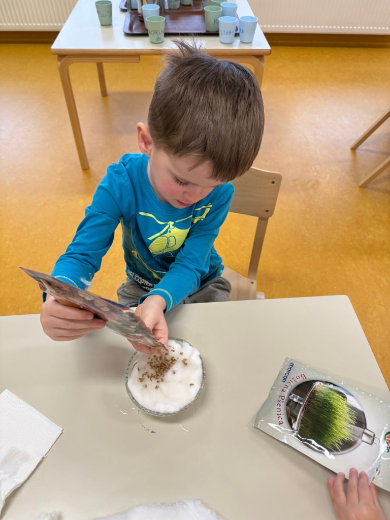 Pod vodstvom svojih odgojiteljica, mališani su pažljivo posadili zrno pšenice u male posude, uzbuđeni što će svojim rukama posaditi nešto što će rasti i razvijati se. Djeca su naučila da pšenica, iako malena i suha na početku, kroz brigu i strpljenje izrasta u zelenu travu, a ujedno je i simbol nade, rasta i svjetlosti koja dolazi s Božićem.
