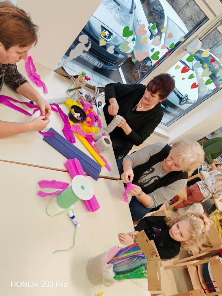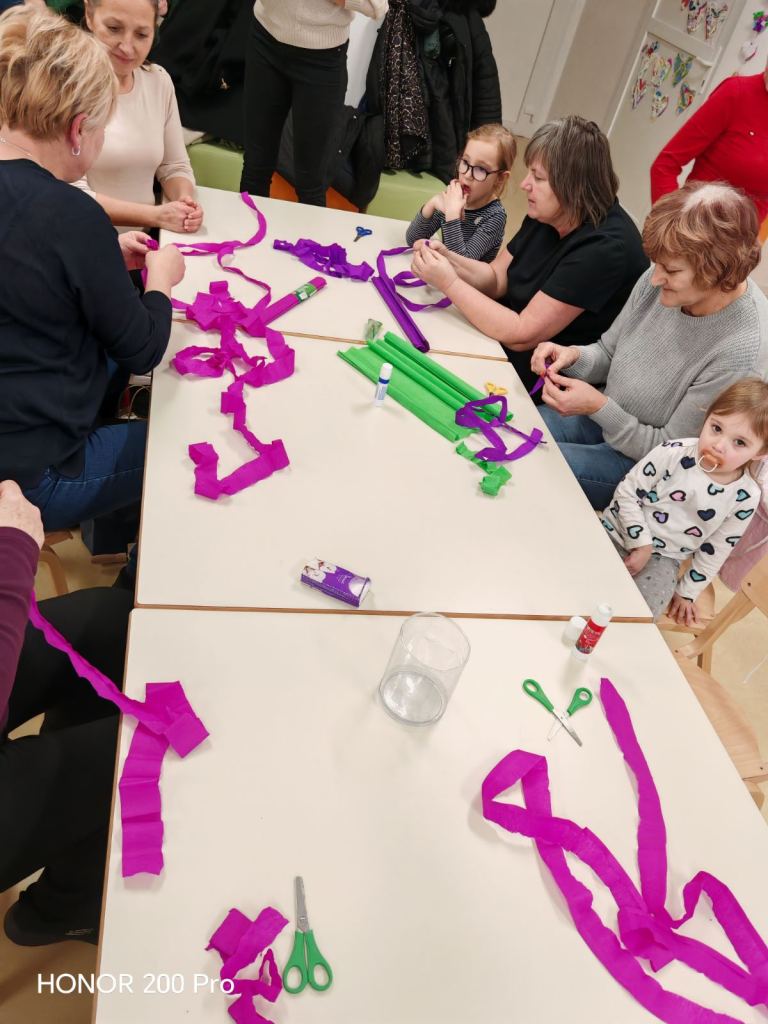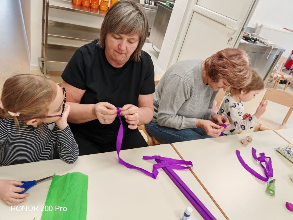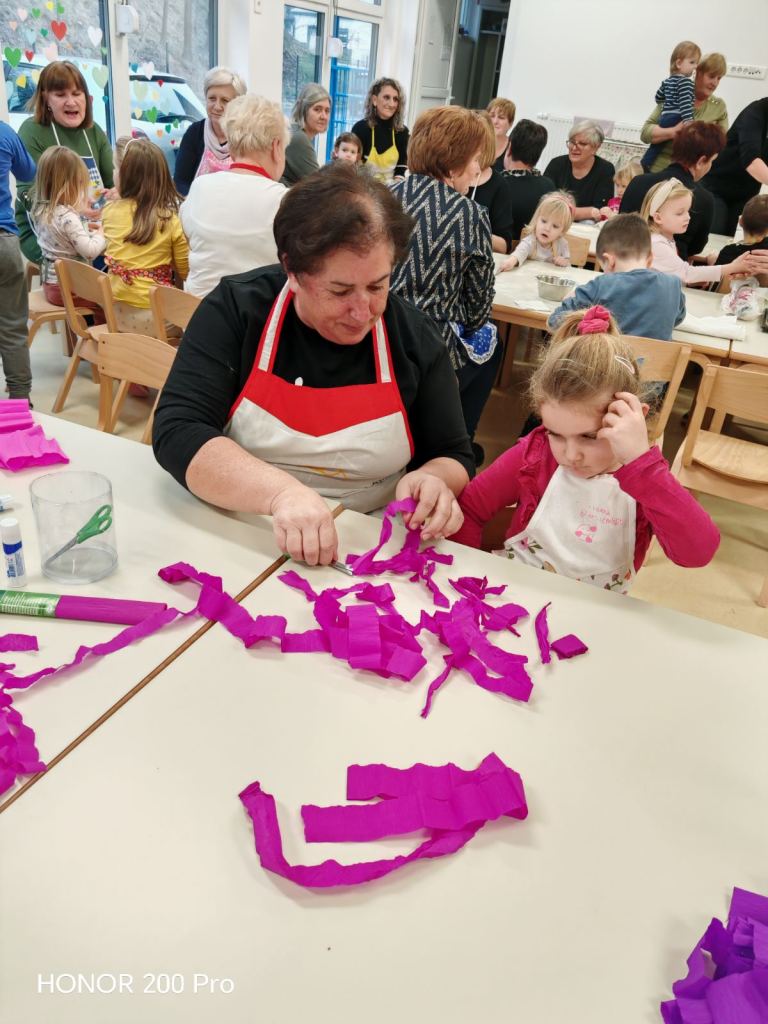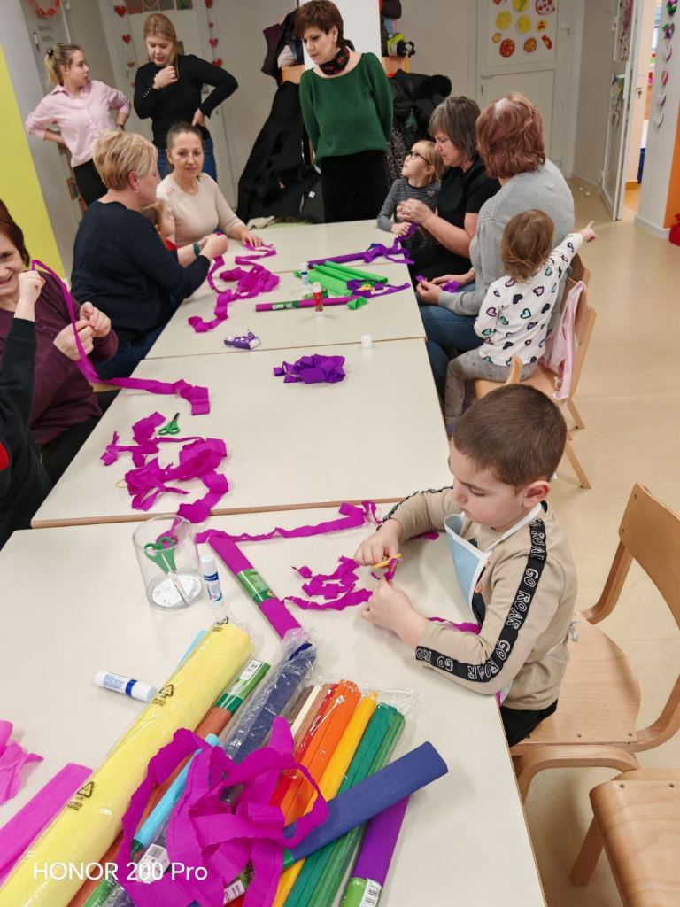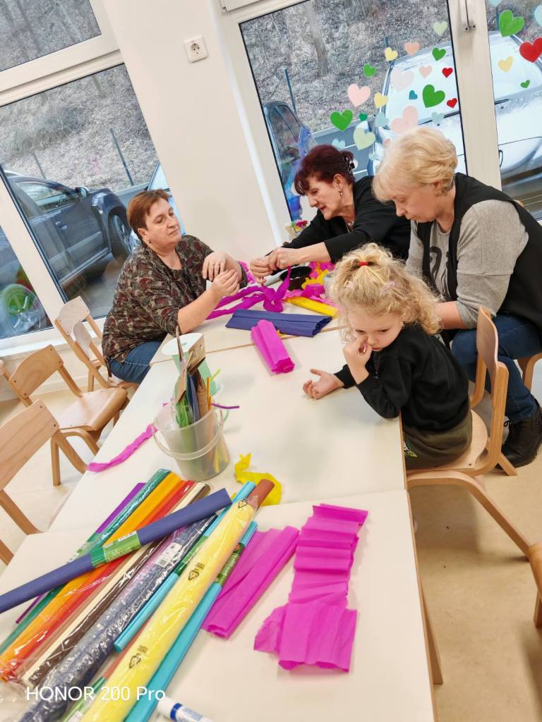 Nakon što su ftičeki bili spremni, radionica je dobila još jednu važnu ulogu – izrada cimera i buketa. Djeca su uz pomoć baka izrađivala šarene cvjetne aranžmane i prigodne ukrase, koji će sutradan krasiti proštenje u Vratišincu, ali i posebnu valentinovsku svadbu koja će se održati upravo u DV Srčeko.