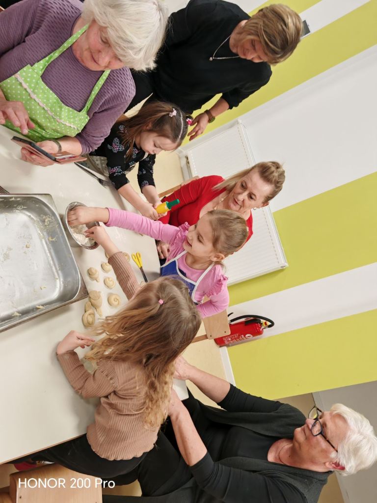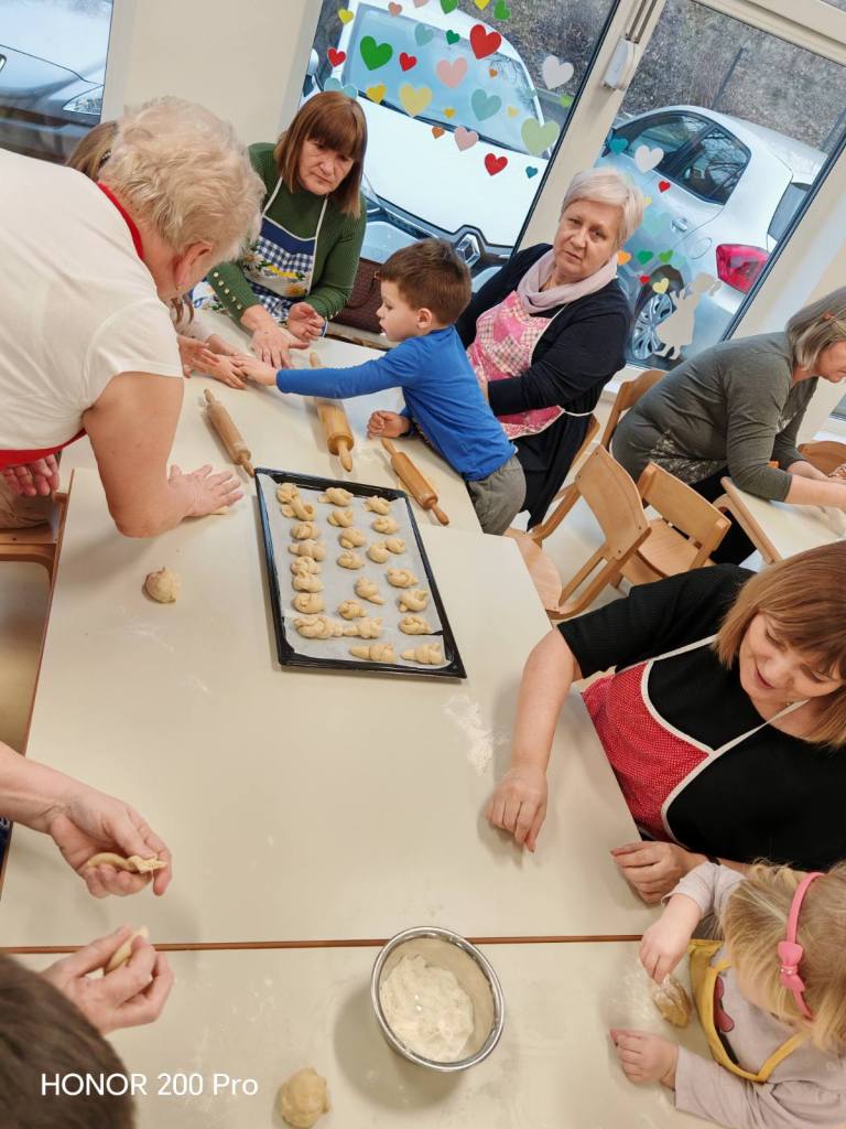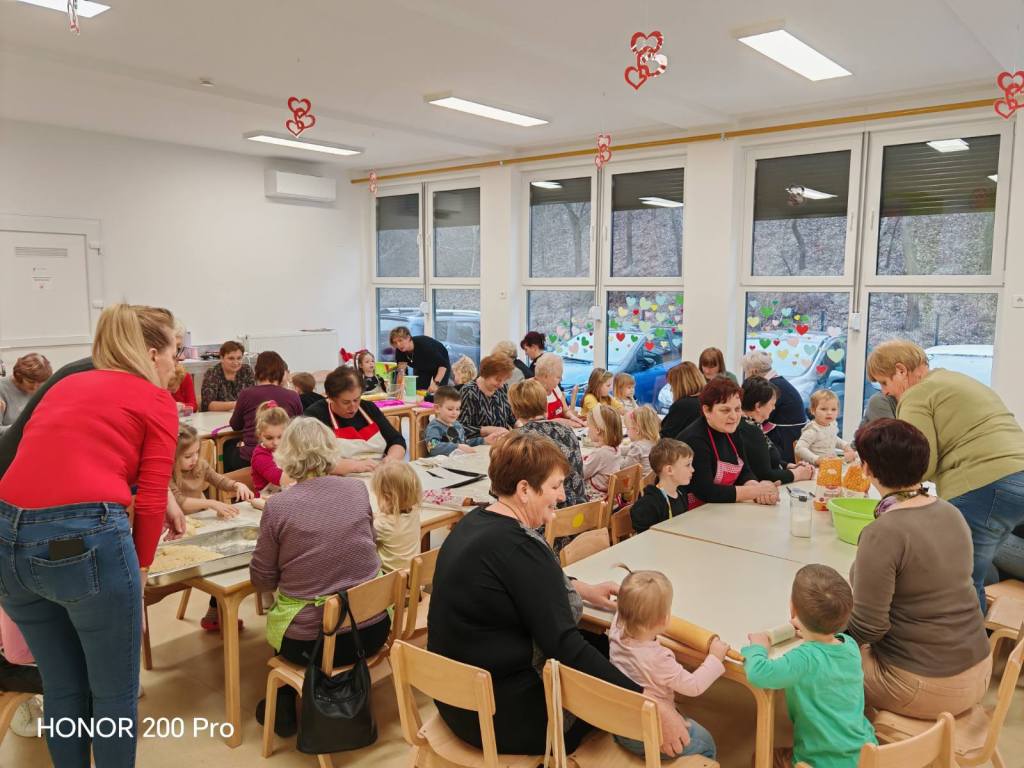 Pripreme su počele uoči Valentinova, kada je u DV Srčeko održana kreativna radionica u kojoj su bake i djeca zajedno pekli, mijesili i oblikovali valentinovske ftičeke – simbol ljubavi i nježnosti. Bake su s osmijehom na licu pokazivale djeci kako zamijesiti tijesto i oblikovati ga u male, šarene ftičeke, dok su mališani s oduševljenjem sudjelovali u stvaranju ovih ukusnih poslastica. Prostorijom se širio miris svježe pečenih kolačića, a svaki ftiček imao je svoj jedinstveni, razigrani izgled, što je dodatno razveselilo male pekare.