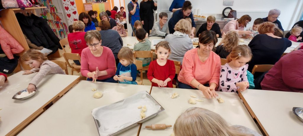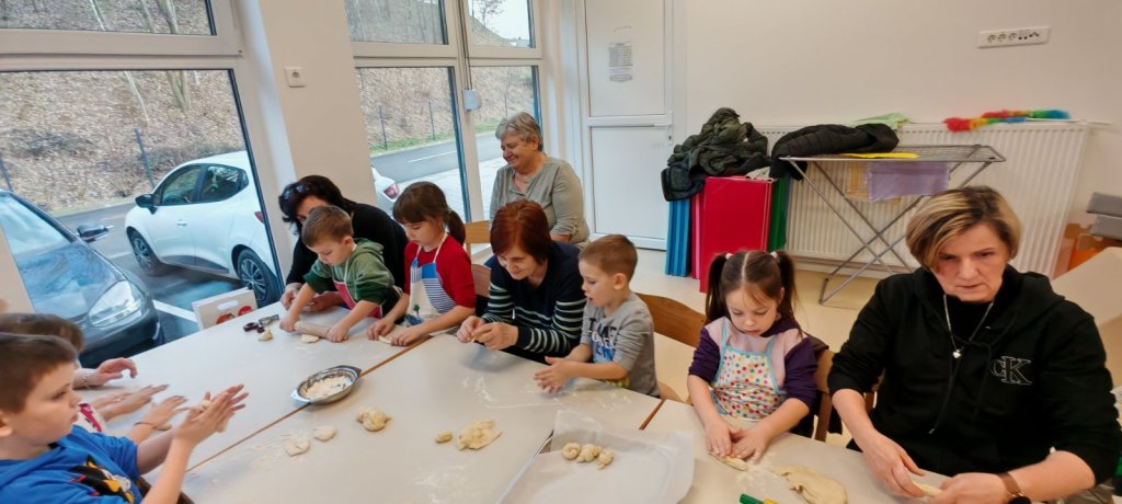 Vrijedne ruke baka i mališani zajedno su pekli tradicionalne valentinovske ftičeke – mirisne kolačiće koji simboliziraju ljubav i dolazak proljeća. Nakon pečenja, druženje se nastavilo uz slaganje i ukrašavanje licitarskih srca.
